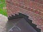 a brick chimney is sitting on top of a brick staircase .