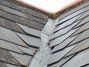 a close up of a roof with slate tiles